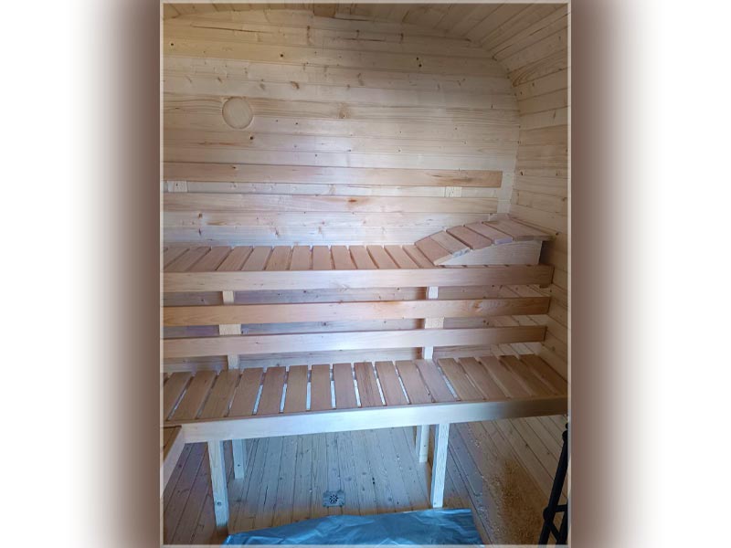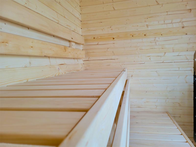 • Bänke im Saunaraum: 2 einseitige, Länge 1740 mm