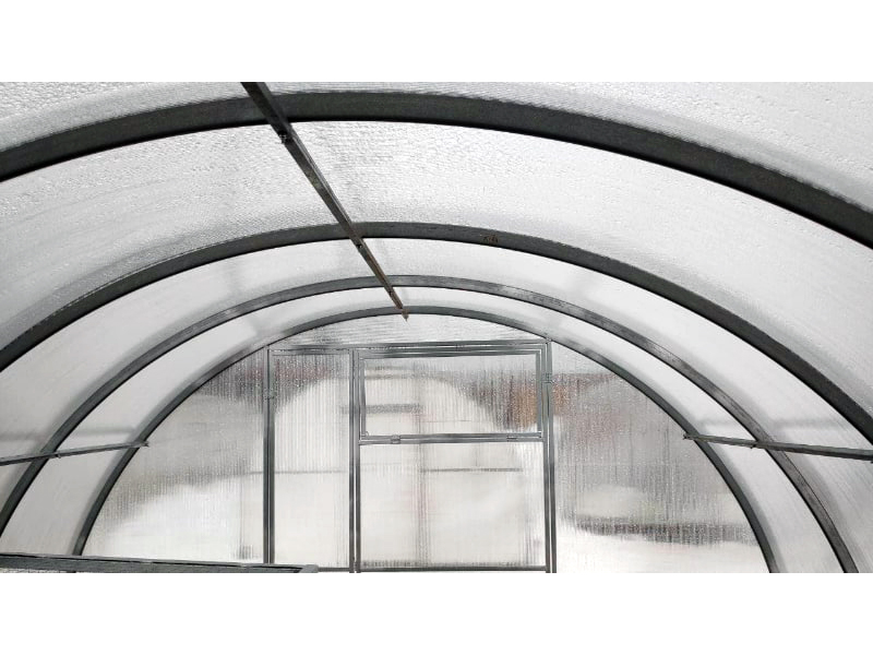 Dieses robuste Polycarbonat-Gewächshaus mit einer Breite von 3,5 Metern und einer Länge von 8 Metern bietet ausreichend Platz für den Anbau von Gemüse, Beeren und Blumen während der gesamten Saison.