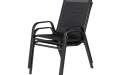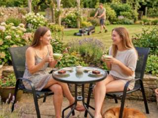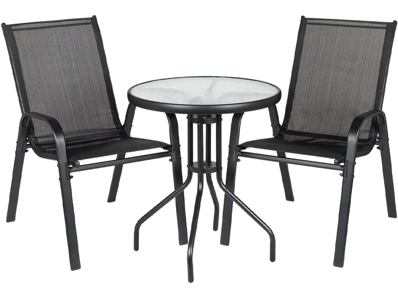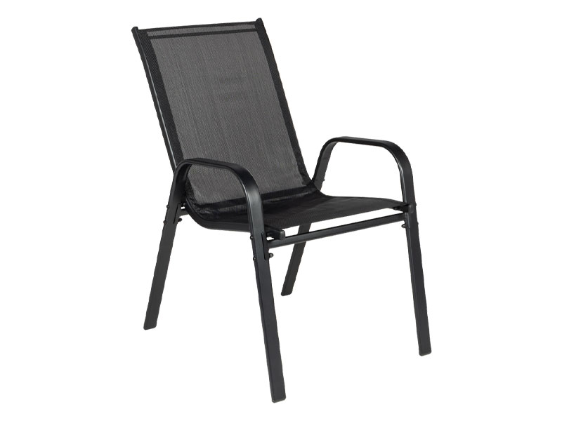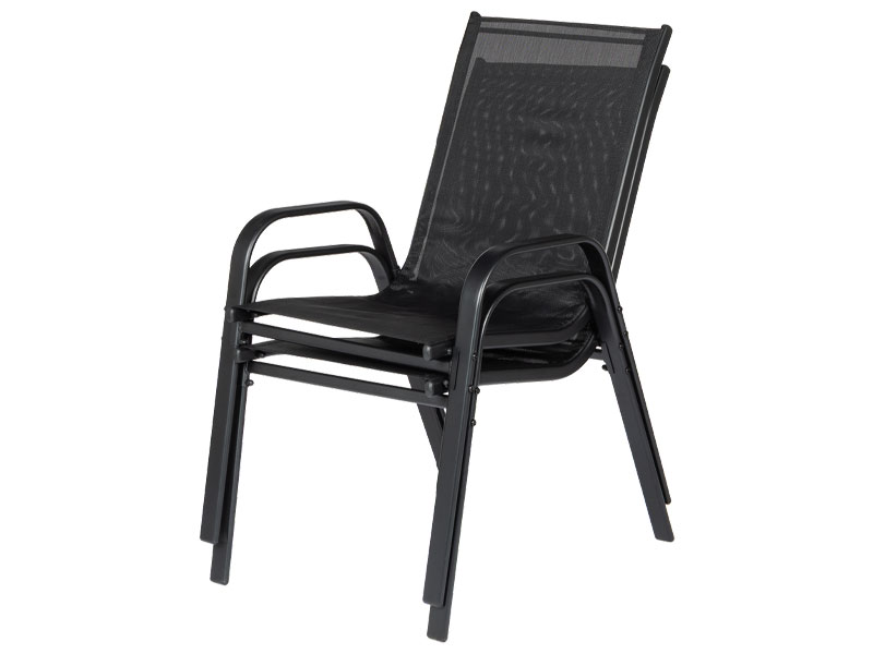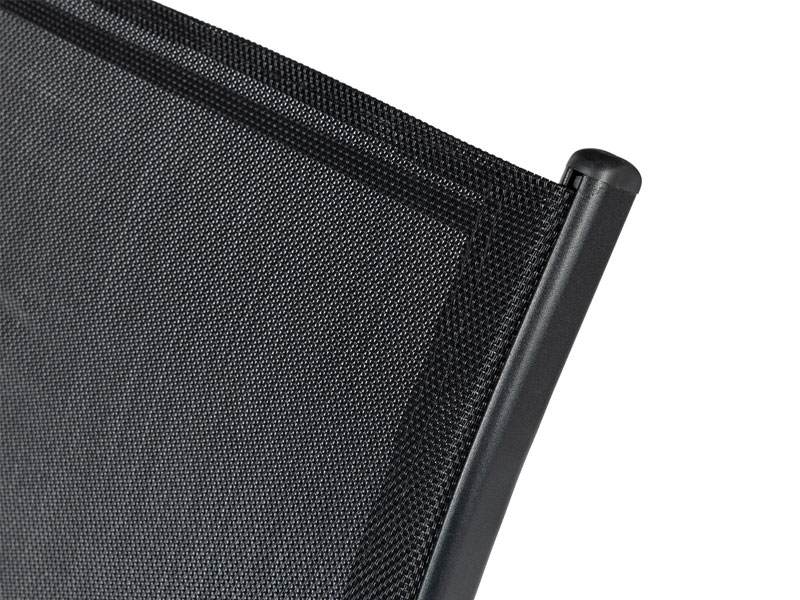 Der Rahmen besteht aus robustem Stahl mit Pulverbeschichtung, die Witterungsbeständigkeit und Langlebigkeit gewährleistet. Die Sitzflächen sind aus atmungsaktivem Textilgewebe gefertigt, das auch an heißen Tagen hohen Komfort bietet.