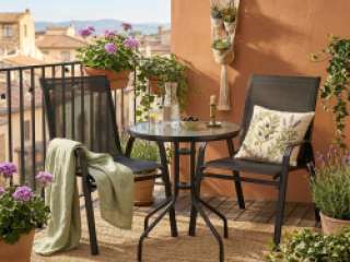 Dank durchdachter Konstruktion vereint das Set Leichtigkeit, Stabilität und modernes Design. Es lässt sich leicht bewegen und passt selbst in kleinere Räume, was es zu einer ausgezeichneten Wahl für Stadtbalkone macht.