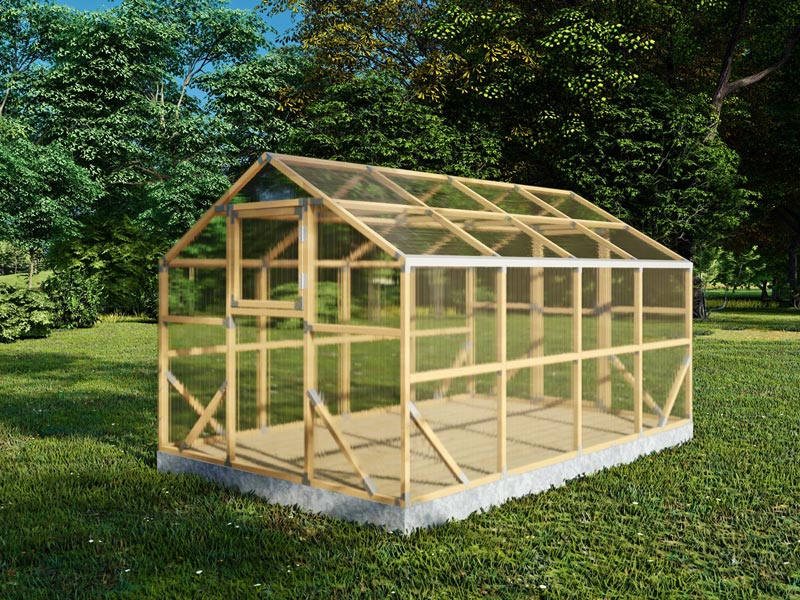 Прочный деревянный каркас теплицы выполнен из толстого, обработанного под давлением соснового бруса, который естественно защищен от влаги и повреждений.
