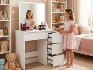 Косметический столик с зеркалом — это не просто мебель, это инструмент для создания вашего идеального образа каждый день. Его удобные ящики помогают держать все под рукой, большое зеркало обеспечивает идеальный макияж, а современный дизайн добавляет изюминку в интерьер. Отличный выбор для девушек и женщин всех возрастов, а также для маленьких принцесс, которые любят порядок и красоту.