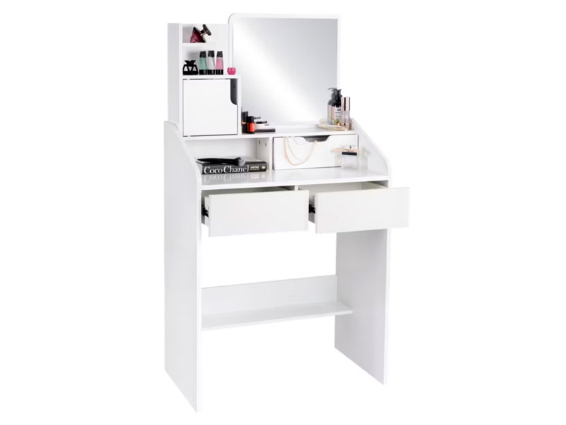 • 3 выдвижных ящика и шкафчик — вместительное хранение косметики и аксессуаров без хаоса.