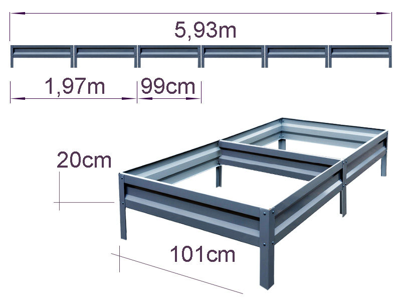 Оцинкованный бордюр для садовой клумбы или тепличной грядки 20 x 101 x 593 см