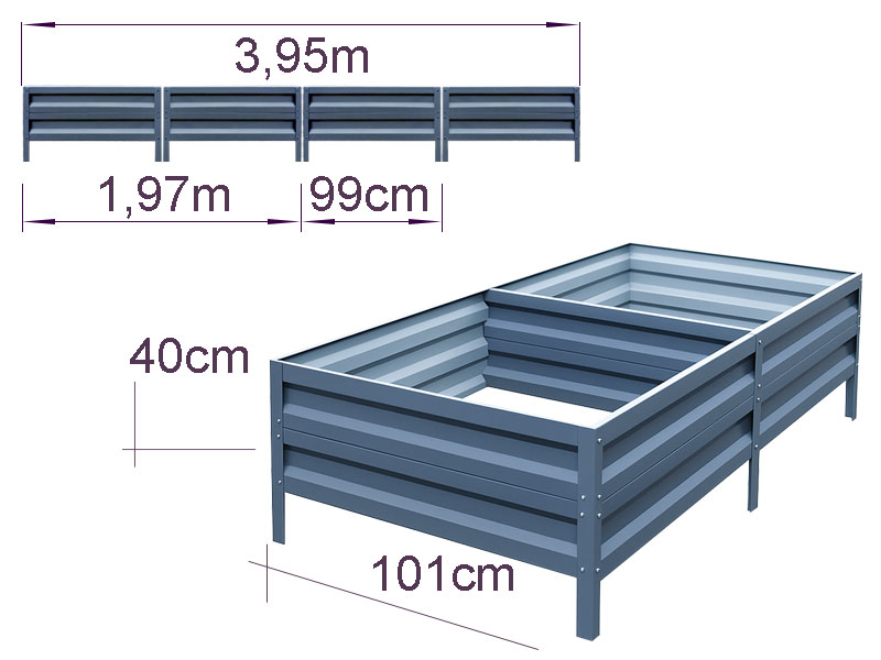 Оцинкованная грядка для вашего сада и теплицы 40 x 101 x 395 см – долговечность, прочность и стиль